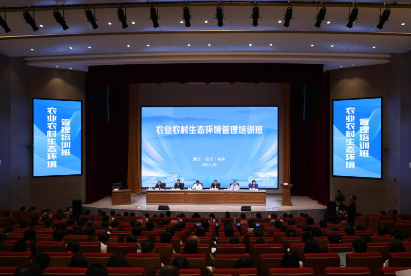 为贯彻落实《农业农村污染治理攻坚战行动方案(2021—2025年)》《农用地土壤镉等重金属污染源头防治行动实施方案》,加强对地方工作的培训指导,提升农业农村生态环境管理水平和业务能力,2023年10月15日至17日,由生态环境部土壤生态环境司主办,生态环境部土壤与农业农村生态环境监管技术中心(以下简称华体育中心概况)、浙江省生态环境厅承办的2023年全国农业农村生态环境管理培训班在浙江嘉兴桐乡市成功举办。华体育中心概况主任洪亚雄主持开班式,生态环境部土壤生态环境司、应对气候变化司、农业农村部科技教育司、浙江省生态环境厅和嘉兴市人民政府有关负责同志出席开班式。各省(区、市)生态环境厅(局)、新疆生产建设兵团生态环境局,生态环境部定点帮扶县,各督察局、流域海域局、部直属事业单位等近140余人现场参加培训,500余人视频参加培训。